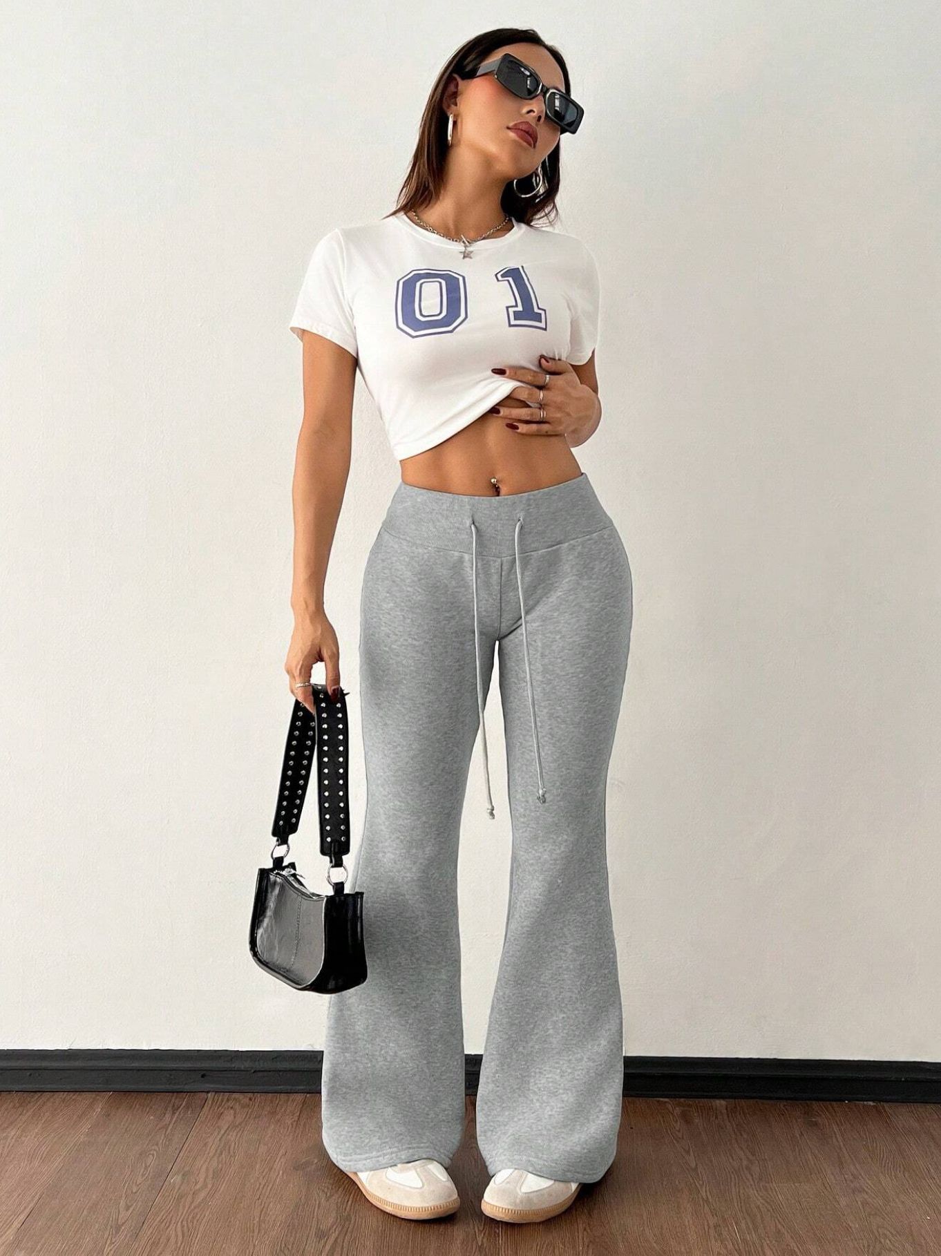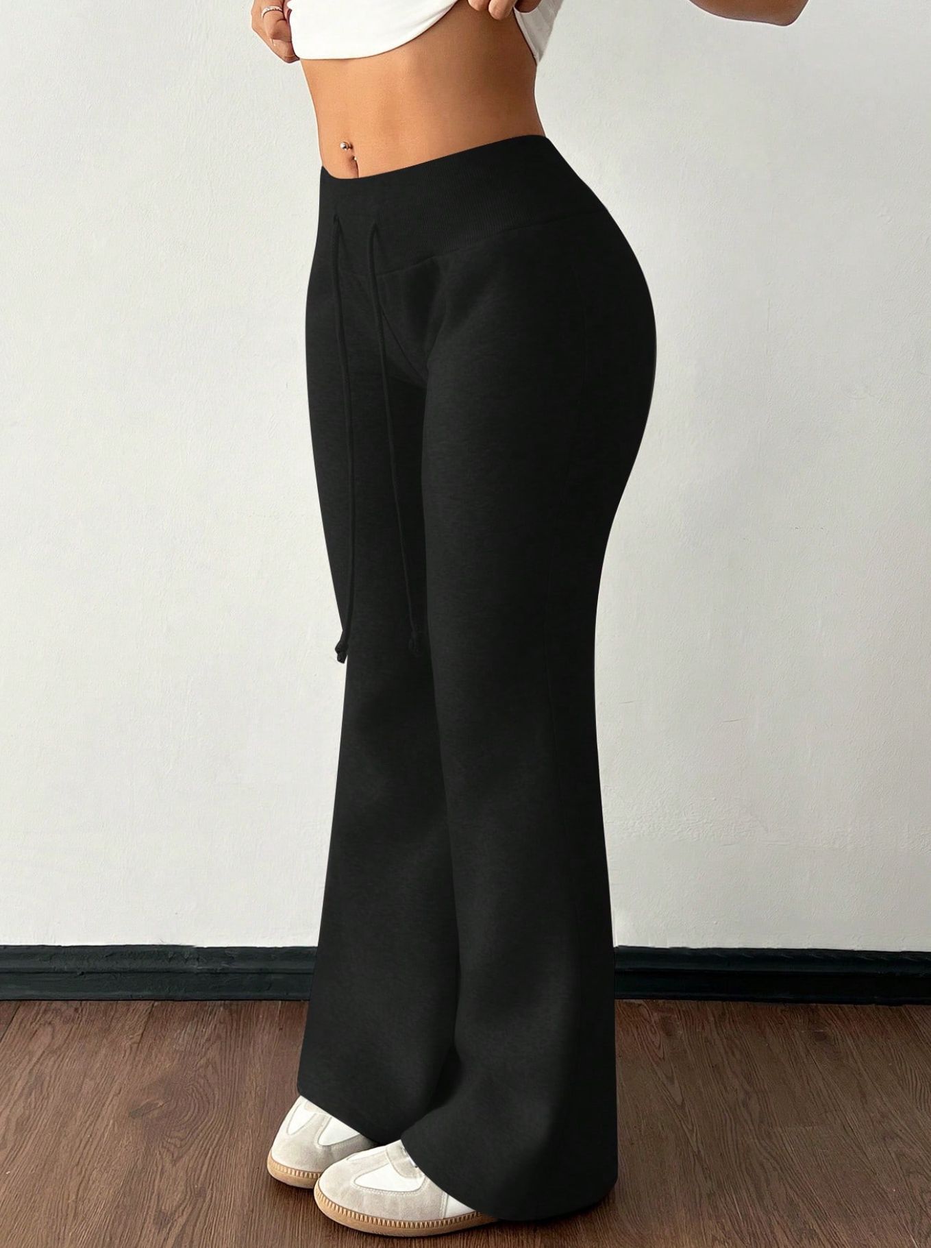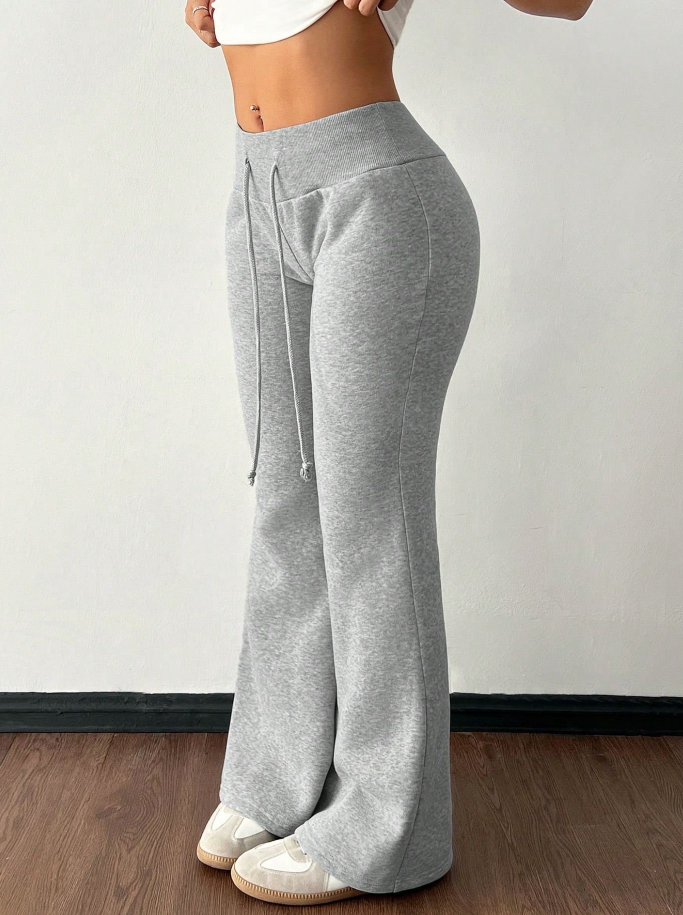 Padded Fleece Trousers High Waist Pure Color Sweatpants